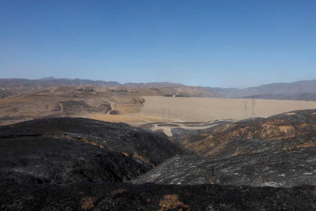 La foto del giorno, le colline bruciate sul lago Castaic vicino Los Angeles (foto Ansa) - Blitz Quotidiano