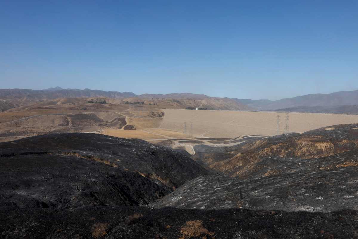 Un altro incendio boschivo è scoppiato a circa 80 km a nord di Los Angeles bruciando circa 5,3 chilometri quadrati. Il rogo è stato denominato “Hughes” ed ha interessato l’area del lago Castaic. Nella foto quello che resta dell’area colpita dalla fiamme, che non sono ancora state domate del tutto, provocando nuove evacuazioni che hanno interessato tutta l’area nord della città.
