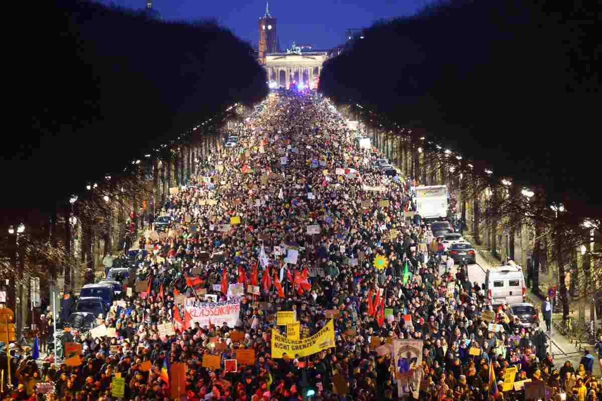 Circa 200mila persone hanno manifestato, a Berlino, contro l’ipotesi di alleanza tra la Cdu, l’Unione Cristiano Democratica data come favorita alle prossime elezioni tedesche, e il partito di estrema destra Alternativa per la Germania (Afd). Un mare di folla ha sfilato davanti alla Porta di Brandeburgo, il monumento simbolo della capitale tedesca.