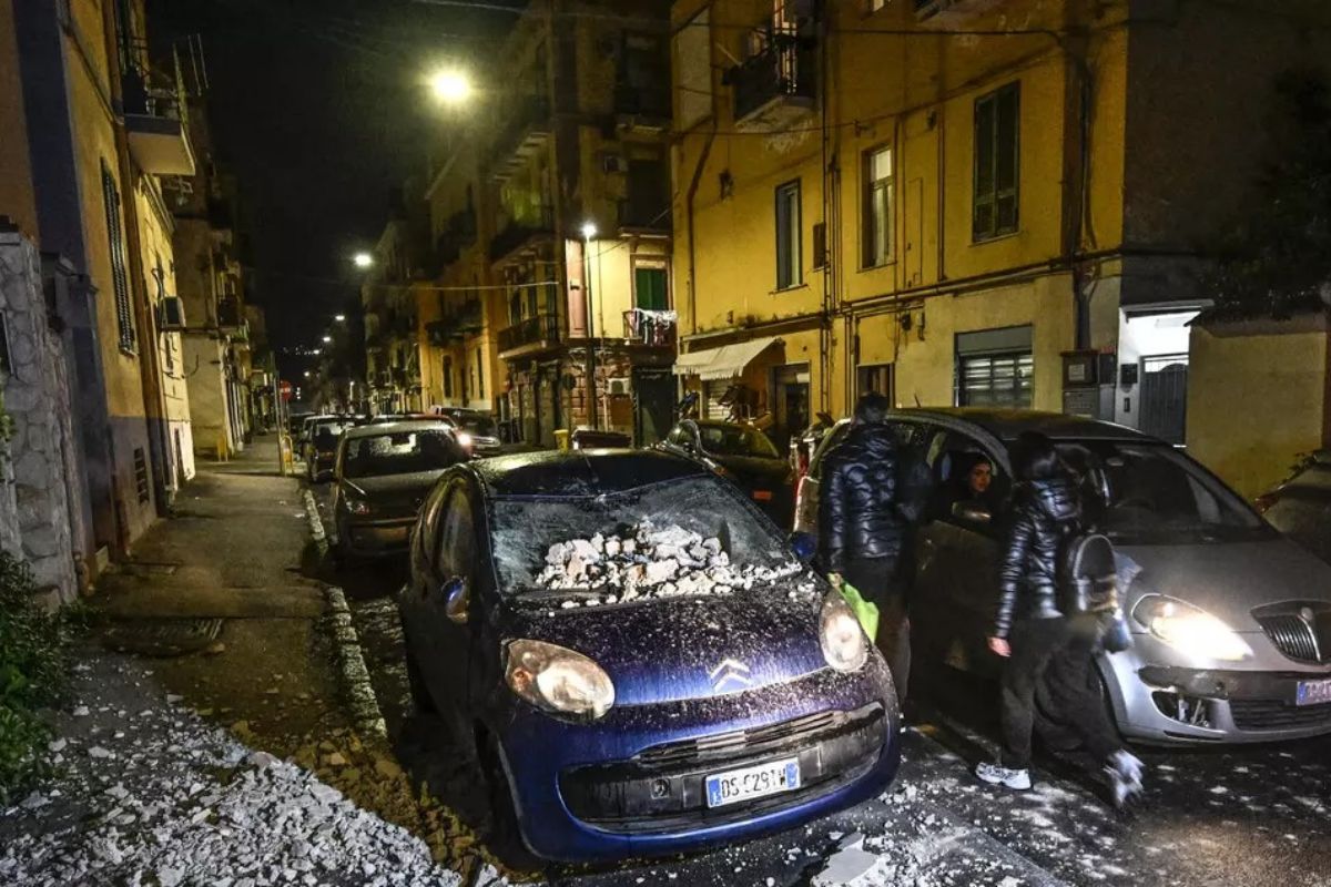 Calcinacci sulle auto dopo il terremoto ai Campi Flegrei