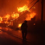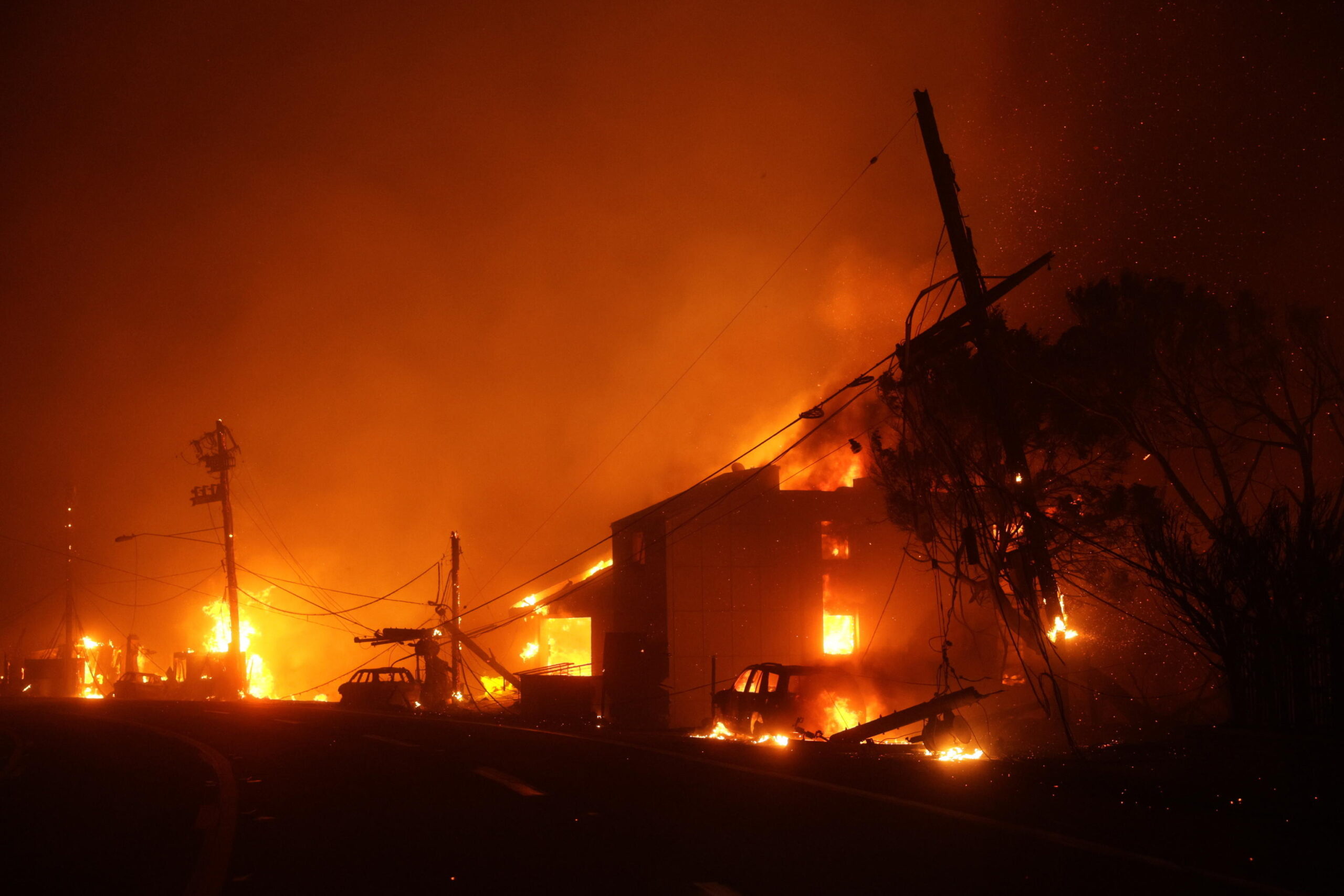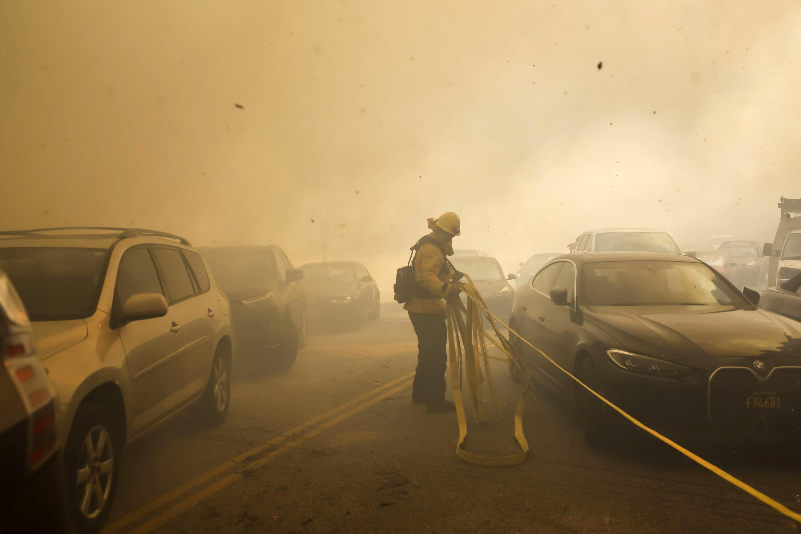 Pacific Palisades, zona esclusiva a ovest di Los Angeles, devastata da un enorme incendio. Le immagini mostrano edifici minacciati, colonne di fumo nero e strade caotiche, con auto abbandonate dai residenti in fuga tra cenere e forti venti. La città ha dichiarato lo stato di emergenza: oltre 30.000 persone sono state evacuate e 13.000 edifici sono in pericolo. Il presidente Joe Biden ha annullato un viaggio a Coachella per gestire la crisi.