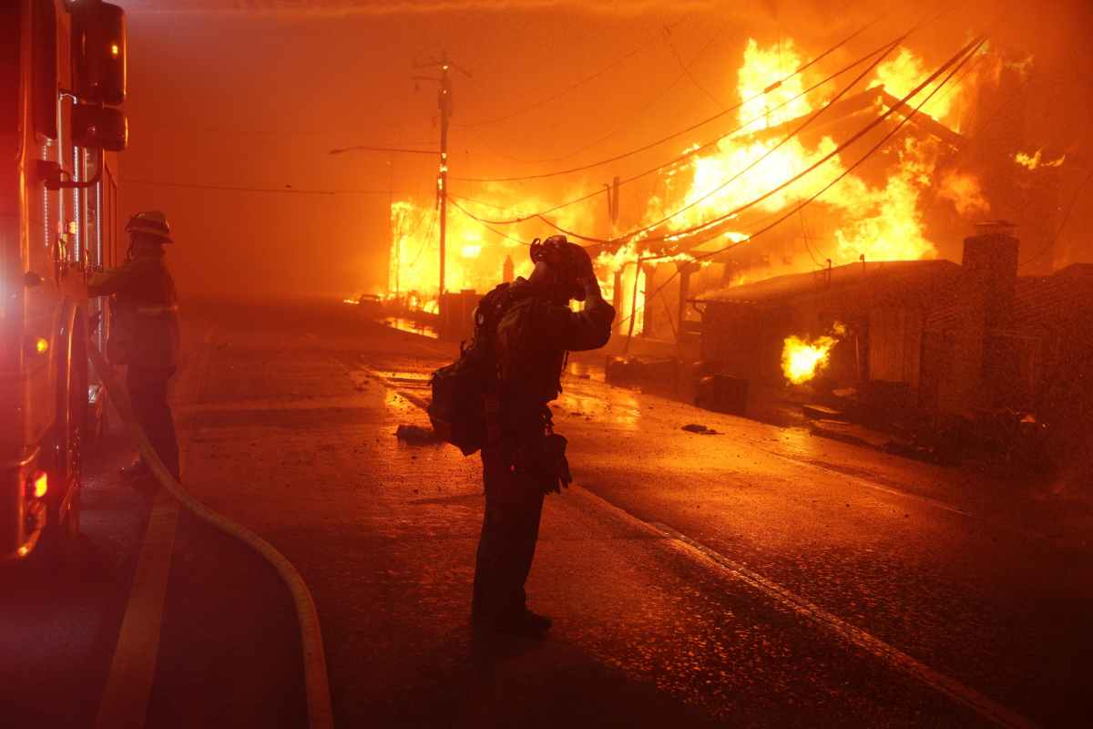 Pacific Palisades, zona esclusiva a ovest di Los Angeles, devastata da un enorme incendio. Le immagini mostrano edifici minacciati, colonne di fumo nero e strade caotiche, con auto abbandonate dai residenti in fuga tra cenere e forti venti. La città ha dichiarato lo stato di emergenza: oltre 30.000 persone sono state evacuate e 13.000 edifici sono in pericolo. Il presidente Joe Biden ha annullato un viaggio a Coachella per gestire la crisi.