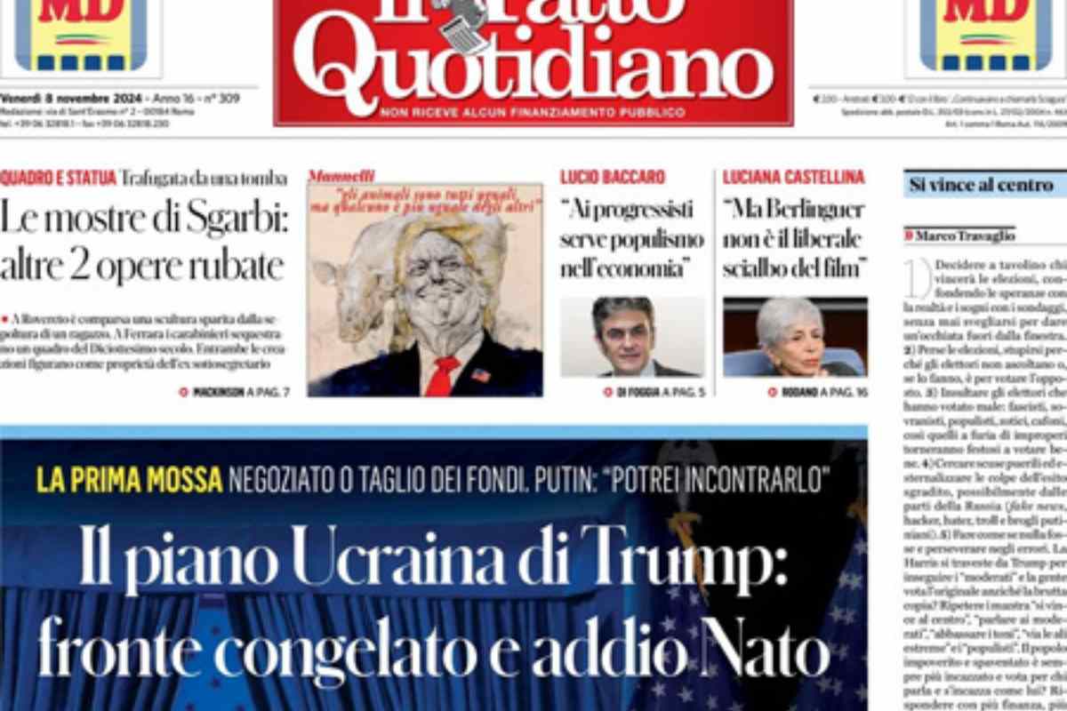 “Il piano Ucraina di Trump: fronte congelato e addio Nato”. (Il Fatto Quotidiano)