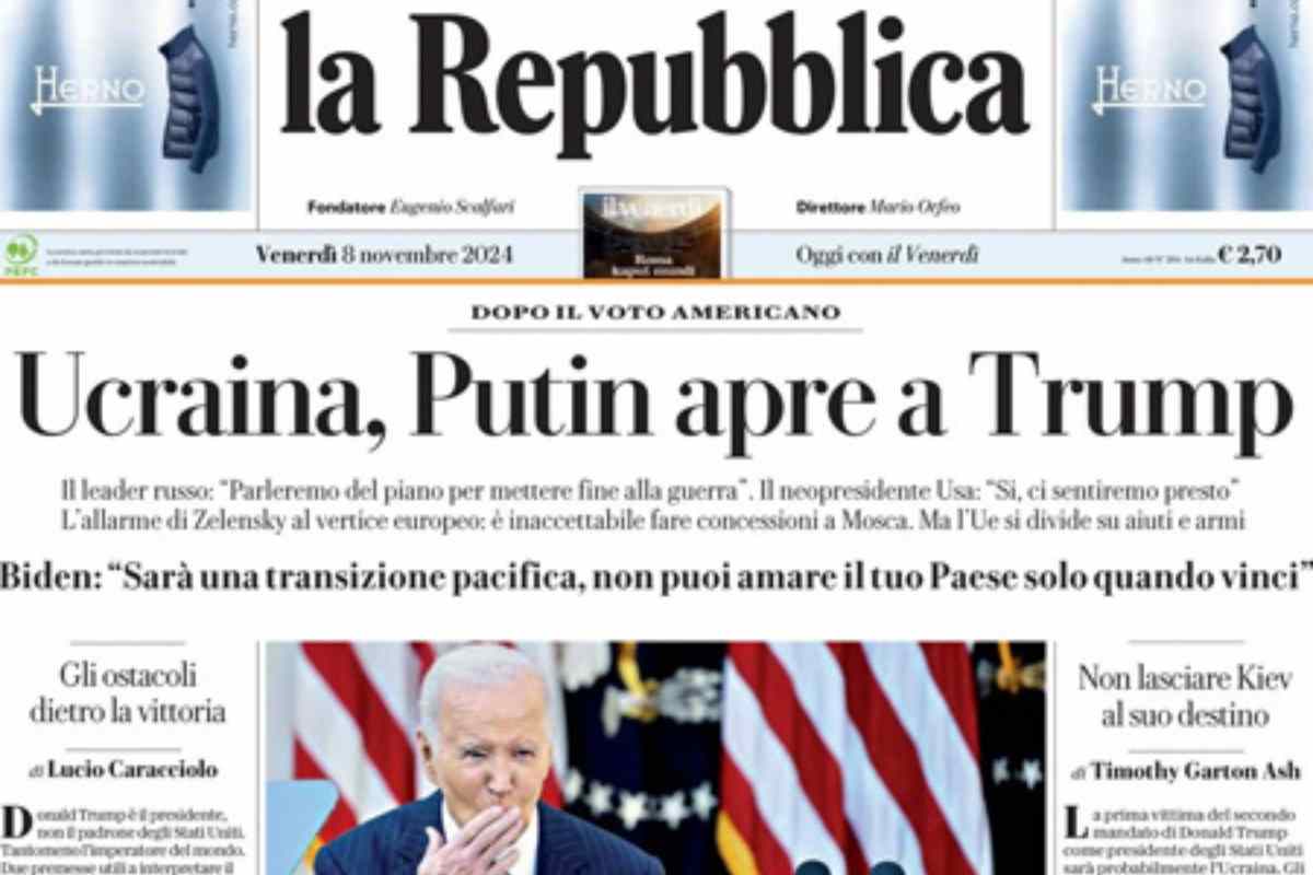 “Ucraina, Putin apre a Trump”. (La Repubblica)