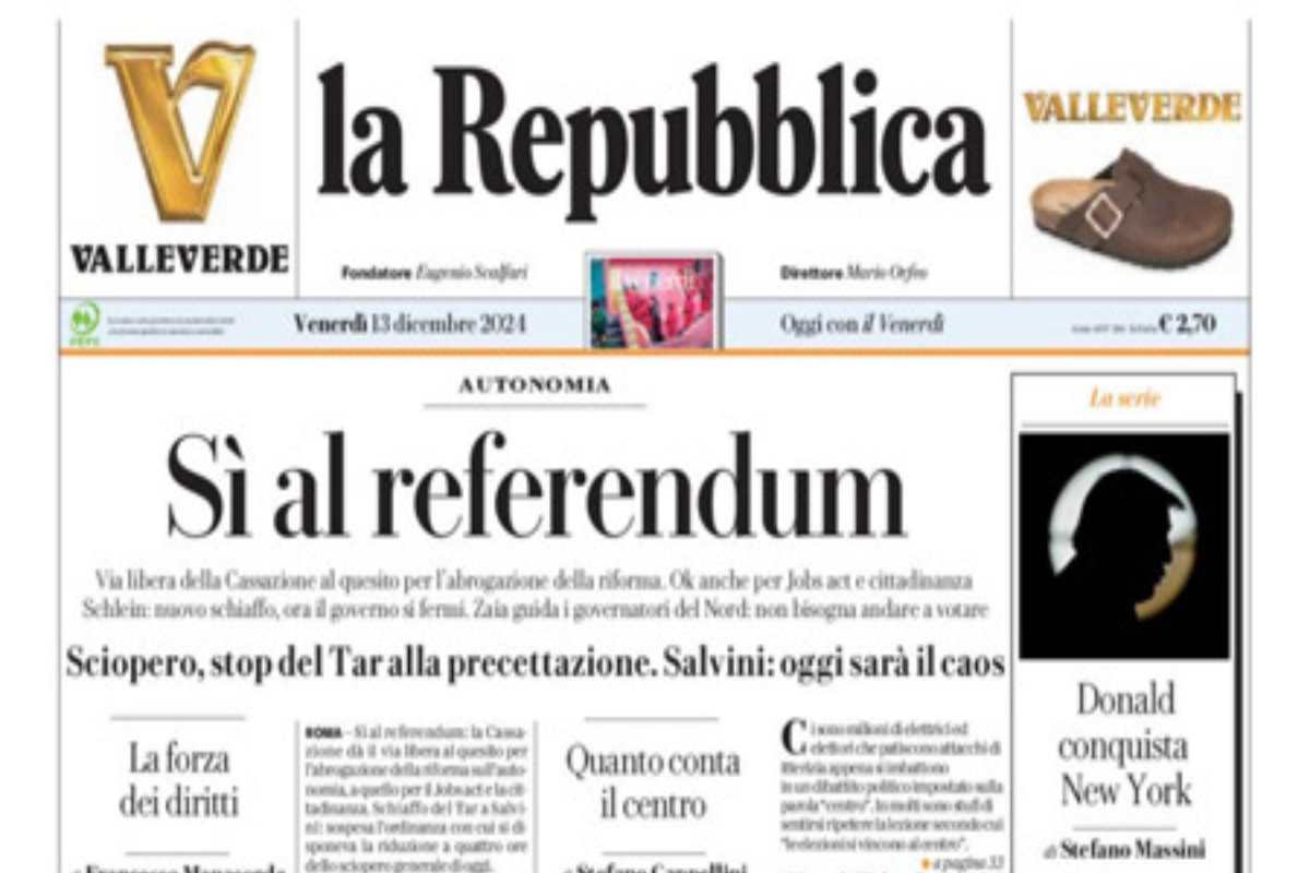 L'EDICOLA, La Repubblica: "Sì al Referendum". La Stampa "Autonomia e scioperi, è scontro". Il Corriere: Ruffini "Lascio, ecco perché" - Blitz Quotidiano