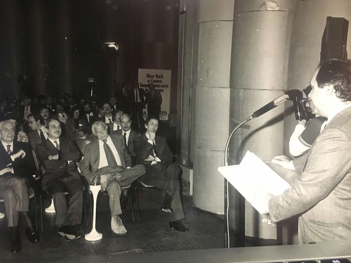 Agnelli un editore d’altri tempi: la Stampa, il mito di De Benedetti e altri aneddoti - Blitzquotidiano.it (nella foto d'archivio Giorgio Fattori a sin., poi Michele Torre, Gianni Agnelli, Antonello Perricone, Marco Benedetto al microfono, in seconda fila Emilio Melli)