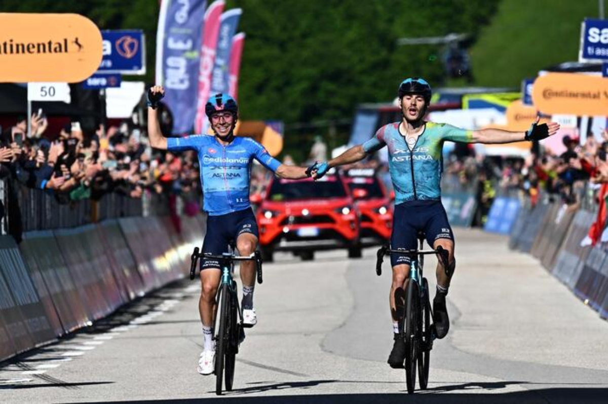 Trionfo azzurro al Giro. Podio tutto italiano. Primo Christian Scaroni, secondo Lorenzo Fortunato. Doppietta Astana. I due compagni di squadra sono arrivati al traguardo di Brentonico in solitaria stretti in un commovente abbraccio e nel delirio della folla. Prima vittoria azzurra al Giro d’Italia arrivata soltanto alla 16ma tappa ma è arrivata con una apoteosi.