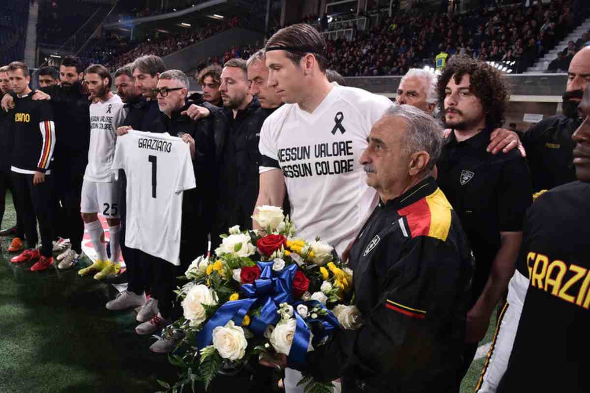 Infine: “Ad una grave ingiustizia non si risponde violando platealmente le regole, come se per onorare Graziano si debba intraprendere una gara, tra noi e la Lega, a chi fa peggio. Giocheremo la partita “dei valori calpestati”, ma lo faremo indossando una anonima casacca bianca, che non ci rappresenta, senza colori, stemmi e loghi. Torneremo a vestire la nostra maglia quando Graziano ritornerà a casa e sarà omaggiato, come merita, dalla sua gente”.