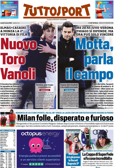 “Milan folle, disperato e fuorioso”. (Tuttosport)