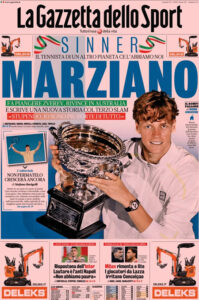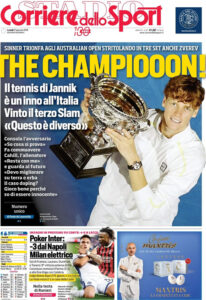 “The champiooon. Il tennis di Jannik è un inno all’Italia”. (Il Corriere dello Sport)