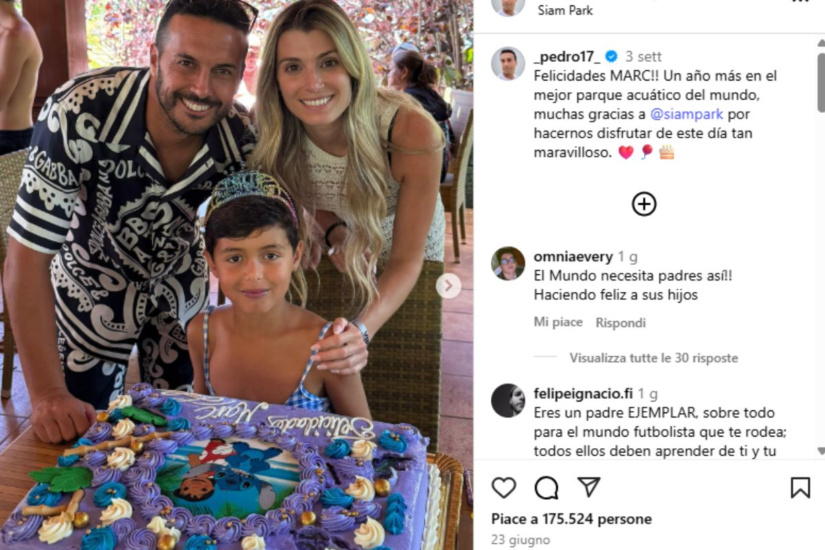 Doveva essere un semplice momento di gioia in famiglia, quello immortalato da Pedro, attaccante 37enne della Lazio, in occasione dell’ottavo compleanno del figlio Marc. Lo scatto, pubblicato su Instagram, ritrae il calciatore insieme alla compagna Patricia e al piccolo Marc, sorridenti dietro una torta a tema Lilo & Stitch, in un’atmosfera festosa. Ma a scatenare una bufera di commenti offensivi è stato l’abbigliamento del bambino: una tiara scintillante e un vestitino con spalline, scelto liberamente per la giornata al Siam Park di Tenerife.