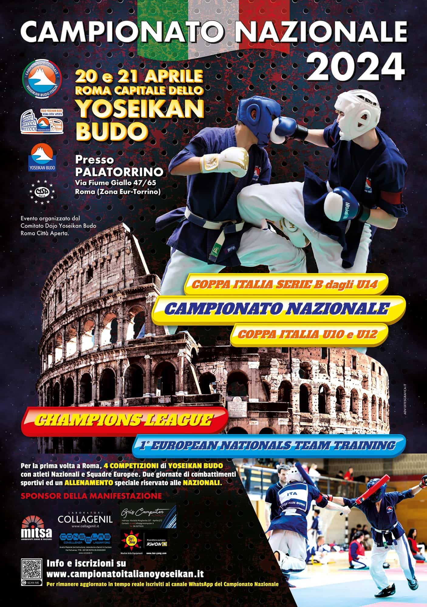 Il Comitato Dojo Yoseikan Budo Roma Città Aperta ASD presenta per la prima volta a Roma il Campionato Nazionale di Yoseikan Budo che si svolgerà il prossimo 20 e 21 aprile, presso il Palatorrino a Roma in Via Fiume Giallo. Oltre al Campionato Nazionale 2024, negli stessi giorni, si disputerà anche la Coppa Italia U10/U12 riservata alle categorie dei Budoka più piccoli e la Coppa Italia Serie B. Infine, un evento speciale, la Yoseikan Champions League, una competizione amichevole tra le maggiori Nazionali Europee che si affronteranno in combattimenti sportivi e daranno luogo a uno spettacolo tecnico/marziale di alto livello. Ad aprile, Roma diventa la Capitale dello Yoseikan Budo. Info ed iscrizioni: www.campionatoitalianoyoseikan.it (ingresso gratuito alla manifestazione).