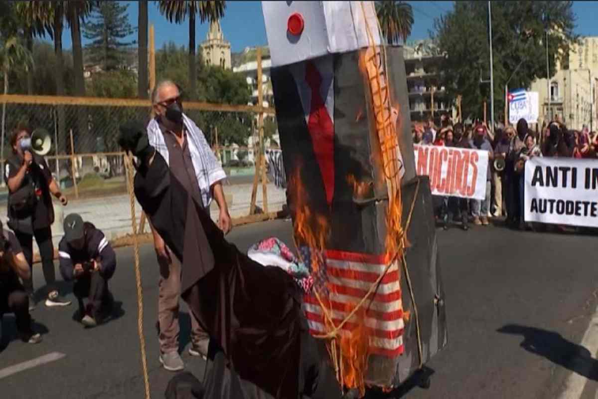 Cile: scontri all'insediamento del neo-presidente nostalgico di Pinochet, bruciato il manichino di Trump vestito da nazista-pedofilo (foto da video) - Blitz Quotidiano