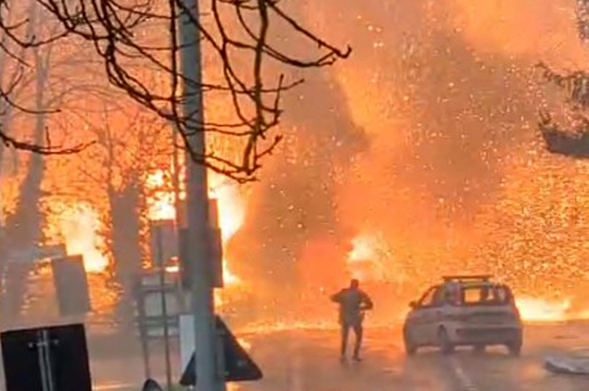 L’esplosione ha distrutto il mezzo, e si è alzata una nuvola nera di fumo. La strada è stata temporaneamente chiusa per consentire le operazioni di soccorso e l’area è stata isolata per permettere l’intervento dei vigili del fuoco e dei sanitari.