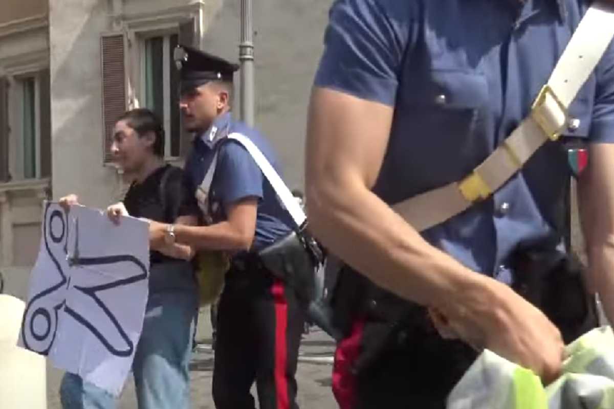 “Giorgia Meloni e il suo governo taglino l’Iva sul cibo che mangiamo ogni giorno. Pane, pasta, farina. Il cibo che compriamo costa sempre di più. Giorgia Meloni lo aveva promesso. Perché non lo fa?”, hanno gridano gli attivisti. “È questa l’Italia che vogliamo, dove la nuova legge sulla sicurezza impedisce di manifestare il dissenso?”, ha urlato qualcun’altro. Poco dopo sono intervenuti i carabinieri, che hanno allontanato di peso i manifestanti accompagnandoli oltre le transenne della piazza.