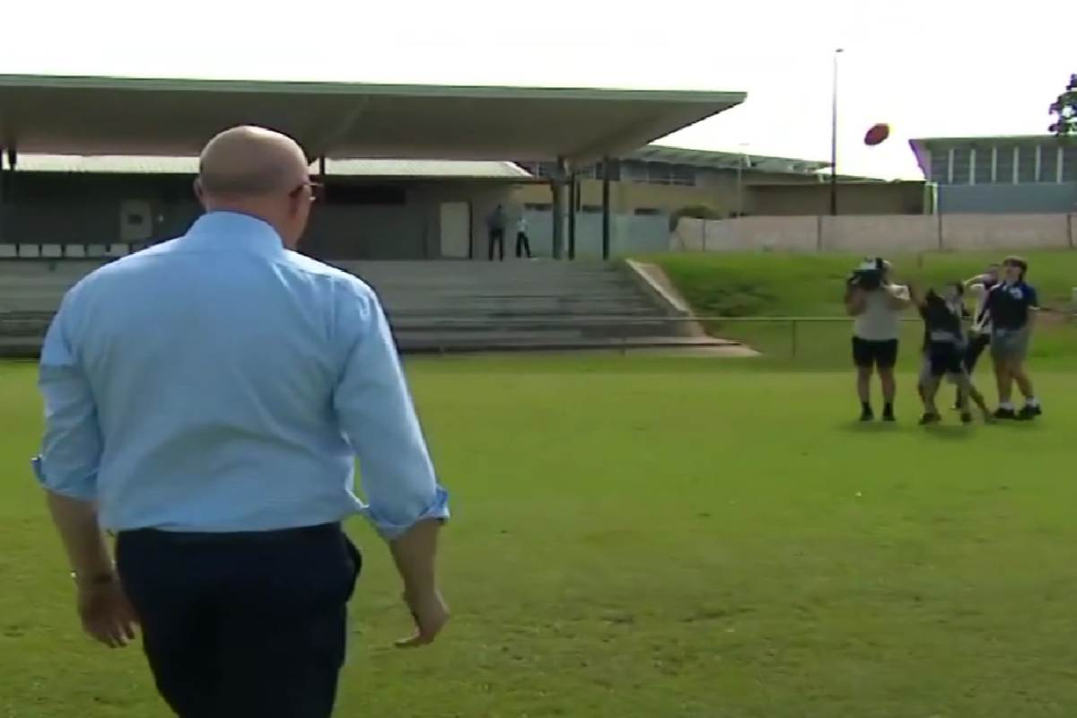 Durante una tappa della sua campagna elettorale, il leader dell’opposizione australia Peter Dutton ha deciso di giocare con un gruppo di bambini alla Cazalys Arena di Palmerston, vicino alla città di Darwin. Naturalmente il politico, sul campo da gioco, è stato accompagnato come di consueto da diverse telecamere che lo hanno ripreso mentre si dilettava con un pallone da football australiano. Durante il gioco, però, Dutton ha calciato il pallone nella direzione di un bambino, che ha provato in tutti i modi a prenderlo ma la traiettoria della palla, un po’ imprecisa, lo ha scavalcato.
