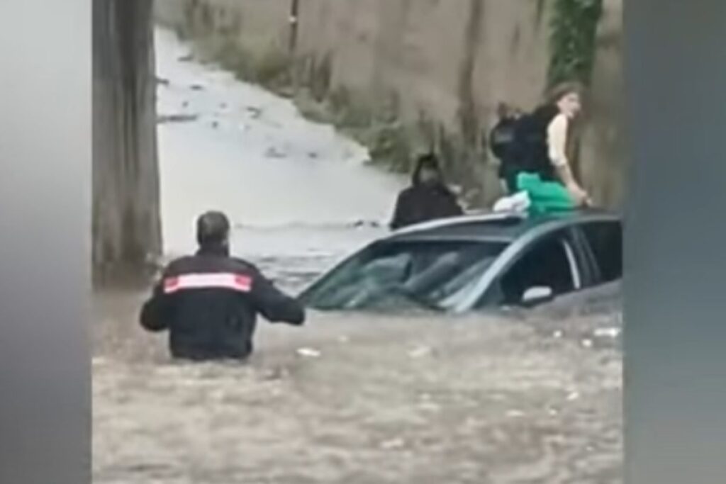 Il video dei carabinieri che salvano una donna rimasta intrappolata nell'auto sommersa per il maltempo (foto da video) - Blitz quotidiano