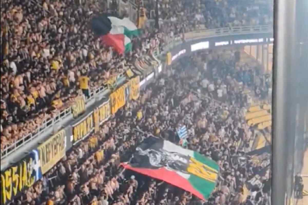 Il video dei tifosi dell'Aek Atene che insultano i tifosi del Beer Sheva: "F****lo Israele, viva la Palestina" (foto da video) - Blitz Quotidiano