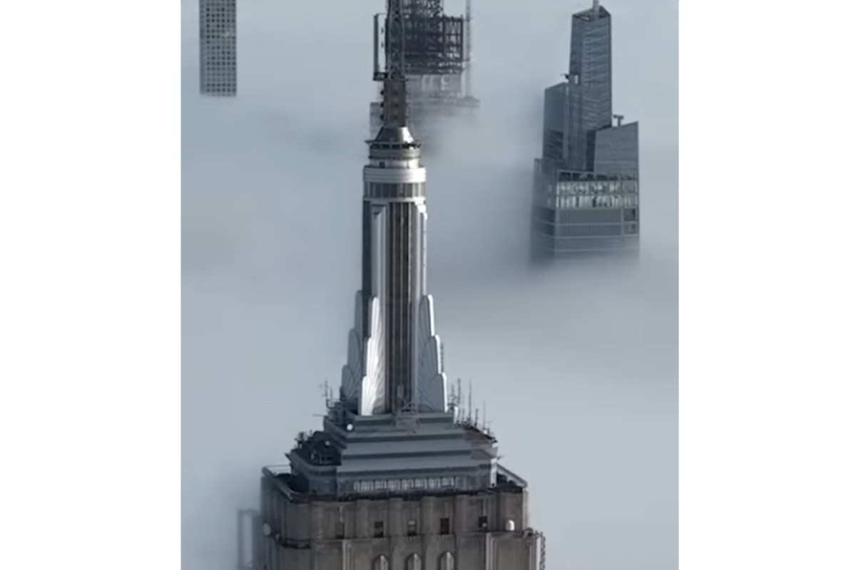 Un imponente banco di nebbia ha avvolto l’intera Manhattan, regalando uno spettacolo atmosferico tanto suggestivo quanto insolito. Le cime dei grattacieli più iconici della città, come l’Empire State Building e il One World Trade Center, sono state completamente inghiottite dalla coltre bianca, scomparendo alla vista.