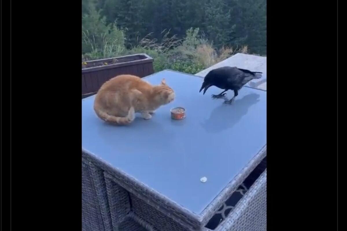 Il video del corvo che ruba il cibo al gatto per condividerlo con un amico inaspettato (blitzquotidiano.it)