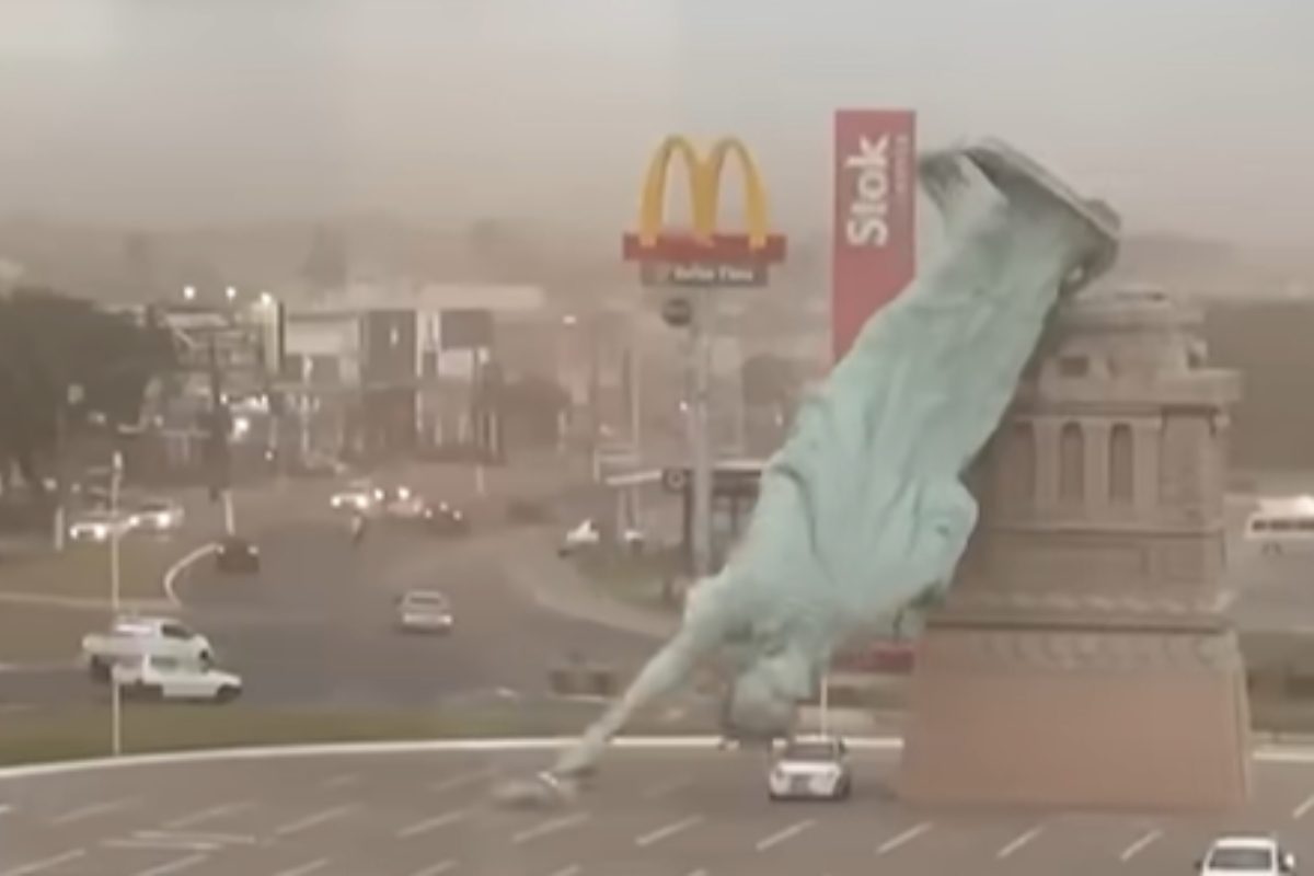 A Guaíba, nel sud del Brasile, una replica della Statua della Libertà alta 34 metri è crollata a causa di una violenta tempesta con raffiche di vento superiori a 90 km/h. Situata nel parcheggio di un negozio Havan, l’installazione si è piegata e spezzata, cadendo al suolo. Fortunatamente non ci sono stati feriti.