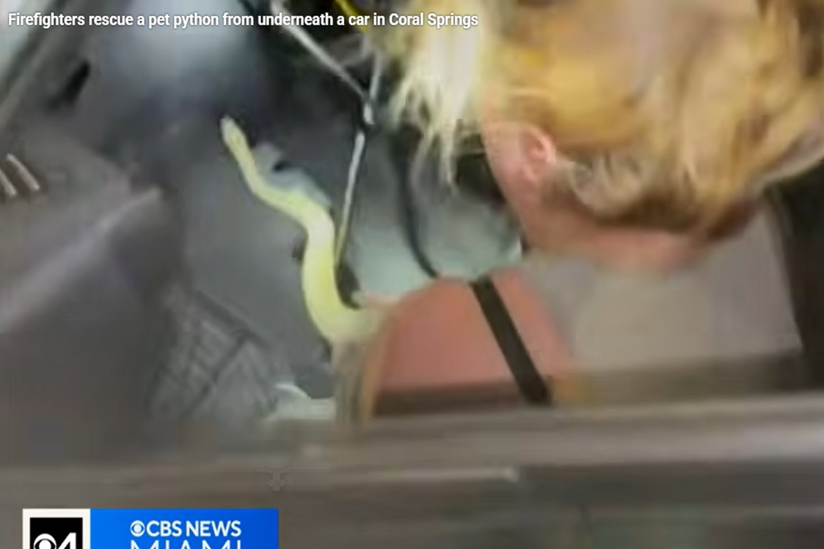I vigili del fuoco di Coral Springs-Parkland, Florida, sono intervenuti in un insolito salvataggio sabato 7 marzo, quando un pitone domestico è rimasto incastrato nel cruscotto di un’auto. La proprietaria ha raccontato: “Non era mai scappato prima, era la prima volta”, recandosi alla stazione intorno alle 19 per chiedere aiuto. I pompieri hanno smontato pezzi dell’auto e rimosso il sedile, utilizzando anche forti rumori per far uscire il serpente. Infine, la donna è riuscita a prendere una parte del pitone e tirarlo fuori delicatamente, senza che nessuno rimanesse ferito: “Nessun membro dei vigili del fuoco è rimasto ferito nell’incidente” ironizzano dall’account social del dipartimento dei vigili del fuoco.
