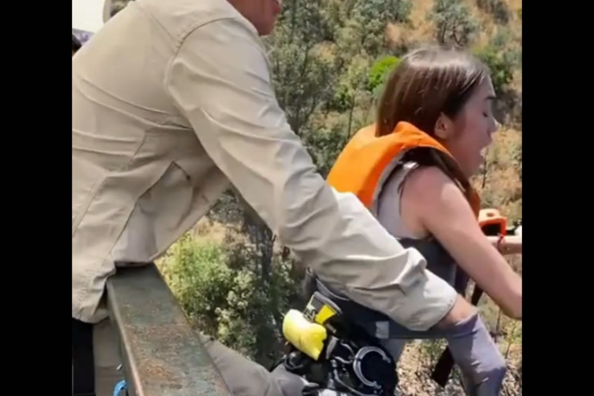Il video della ragazza che viene spinta giù dal ponte del bungee-jumping (foto da video) - Blitz quotidiano