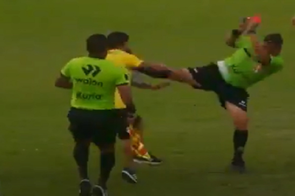 Un membro dello staff tecnico di una squadra che aveva invaso il campo di gioco è stato messo K.O. dall’arbitro con un calcio all’altezza del petto. È accaduto durante un match giocato nella regione dell’Ancash, valido per la Copa Perù e vinto dallo Sport Huaquilla contro il Magdalena CEDEC con un punteggio di 2-1.