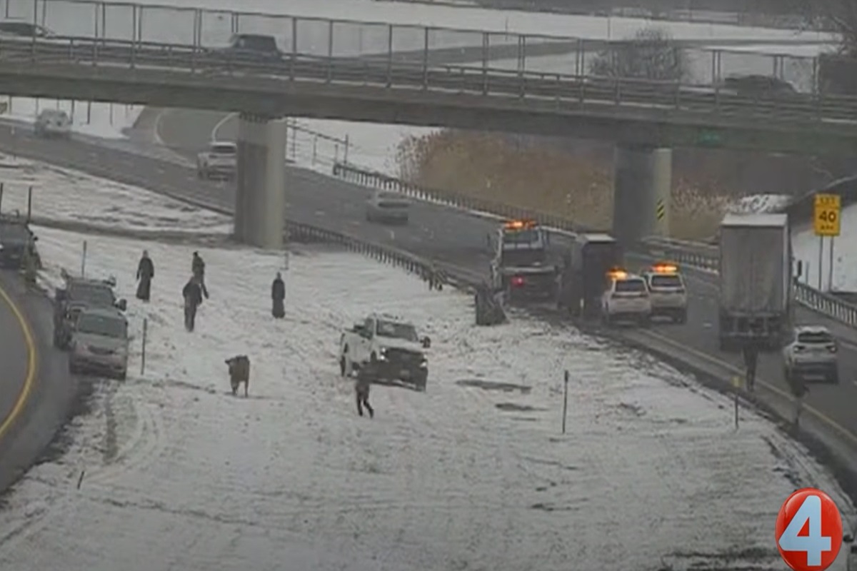 Caos sulla New York State Thruway, all’uscita 56 di Blasdell vicino Buffalo, dove tre mucche sono fuggite da un rimorchio fermo per un guasto meccanico e si sono riversate sull’Interstate 90. Gli animali hanno vagato tra carreggiata e spartitraffico cercando di sfuggire a polizia, proprietari e automobilisti, causando traffico rallentato in entrambe le direzioni.