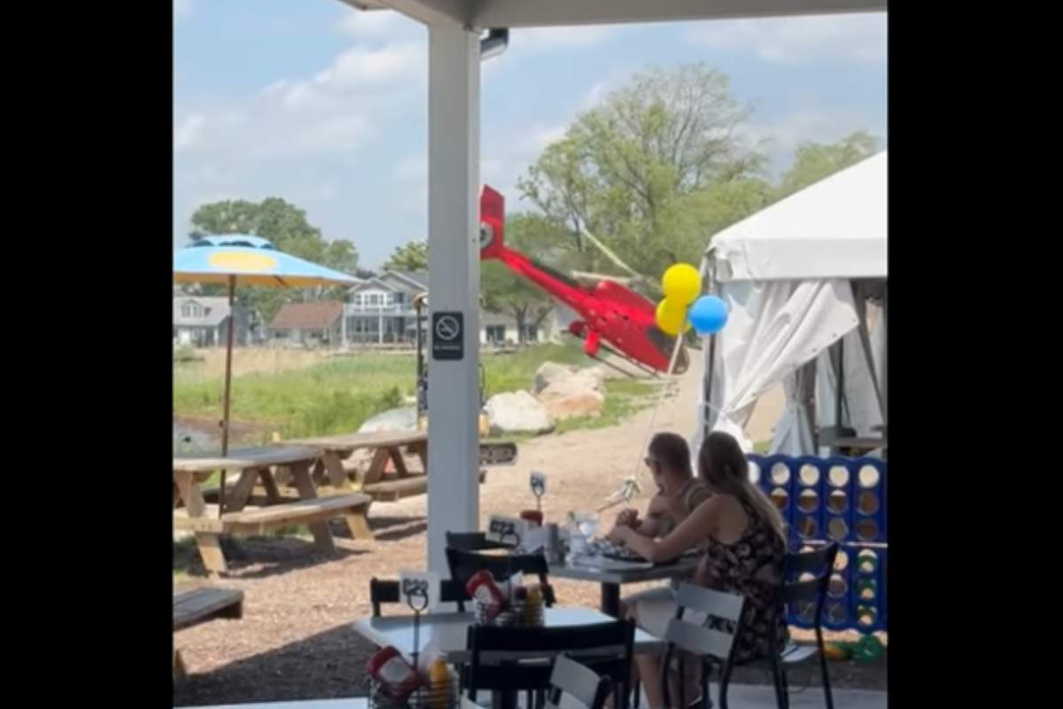 Attimi di terrore nella Clay Township, in Michigan, quando un elicottero ha perso il controllo e si è ribaltato durante una manovra di atterraggio a pochi metri dal Cabana Blue Lakefront Sports Bar and Grill, un ristorante molto frequentato in estate. Un video diffuso sui social mostra il velivolo scendere in modo instabile su un campo vicino al locale, prima che le pale del rotore urtassero il terreno, facendo capovolgere l’elicottero su un fianco.