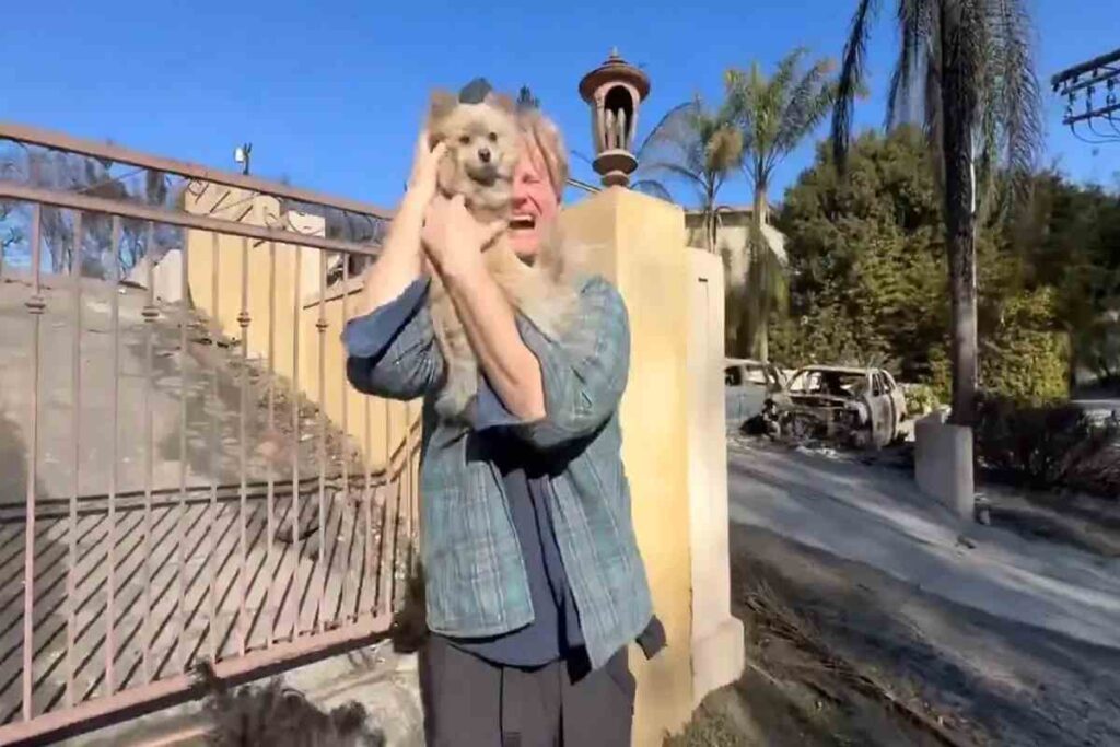 La gioia dell'uomo che ritrova il suo cane disperso negli incendi di Los Angeles (Foto da YouTube) - Blitz Quotidiano