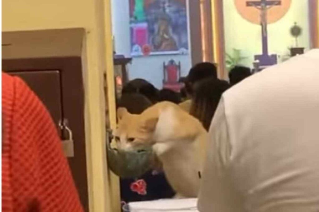 È entrato in chiesa e mentre era in corso la messa si è avvicinato alla vaschetta dell’acqua santa e l’ha bevuta. Protagonista dell’episodio un gatto randagio, le cui gesta sono state riprese durante una funzione religiosa nelle Filippine. Il video è finito su social e ha diviso gli utenti tra chi ha riso di questo semplice gesto e chi ha invece sottolineato che si trattasse solo di un atto legato alla sopravvivenza, dunque nulla di ironico.
