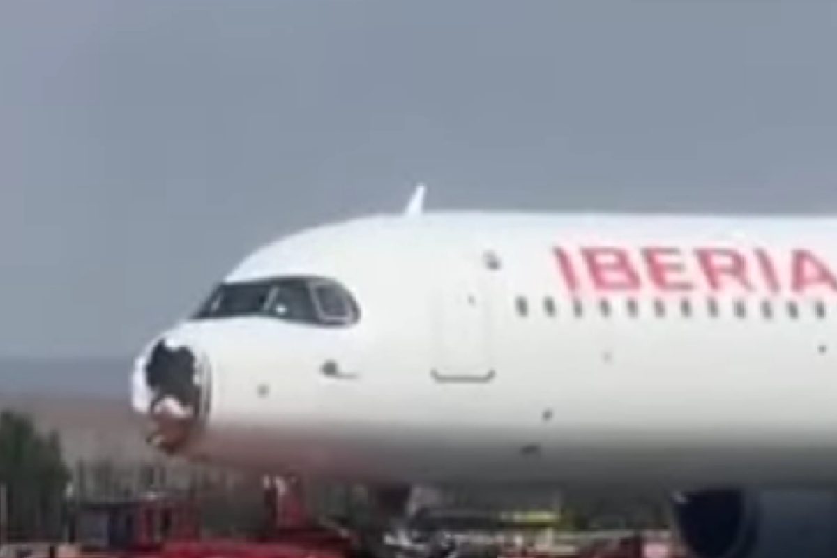 Madrid, aereo Iberia impatta contro un uccello ed è costretto a rientrare in aeroporto: il video dei danni provocati dall'incidente - Blitz Quotidiano