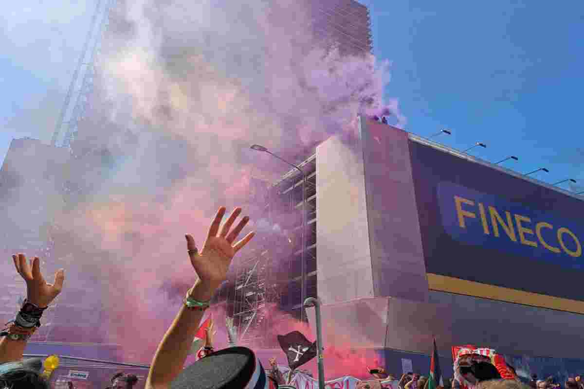 Manifestanti pro-Leoncavallo salgono a Milano sul "Pirellino": fumogeni, vernice e slogan contro la speculazione edilizia (foto Ansa) - Blitz Quotidiano