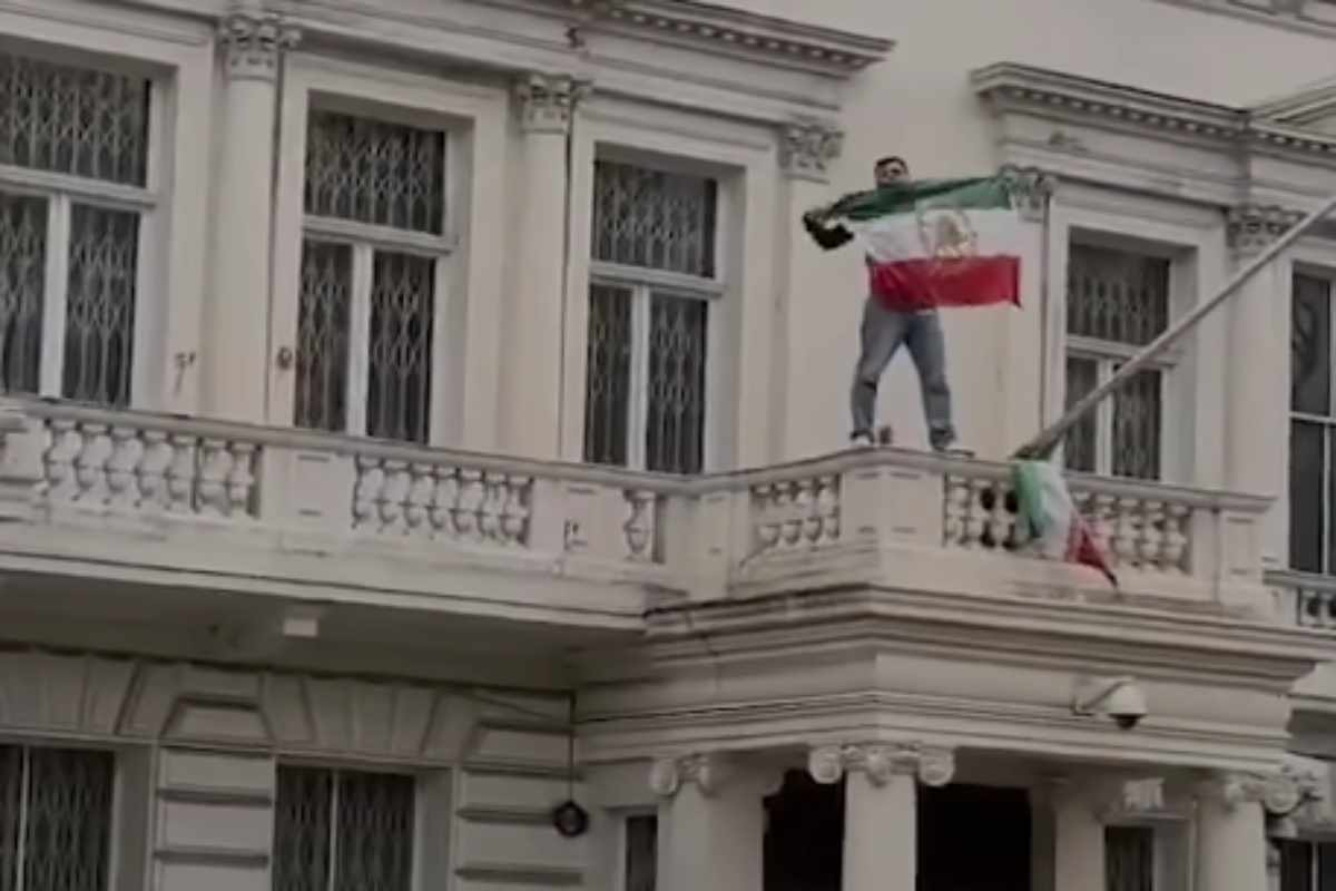 Nella giornata di ieri, un manifestante, già ribattezzato “Spider-Man” sui social, si è arrampicato sul balcone dell’ambasciata iraniana a Londra. L’uomo ha poi strappato la bandiera ufficiale, quella della Repubblica, sostituendola con quella del Leone e del Sole, simbolo dell’Iran imperiale. L’iniziativa, diventata virale sui social, nasce dalla protesta a sostegno dei manifestanti che in Iran, da diverse settimane, contestano il regime degli ayatollah.