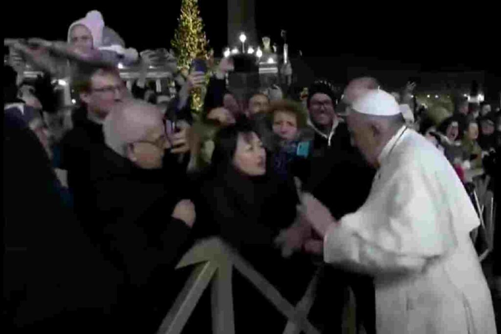 Quando Papa Francesco schiaffeggiò la mano della pellegrina che lo stava strattonando (foto da video) - Blitz Quotidiano