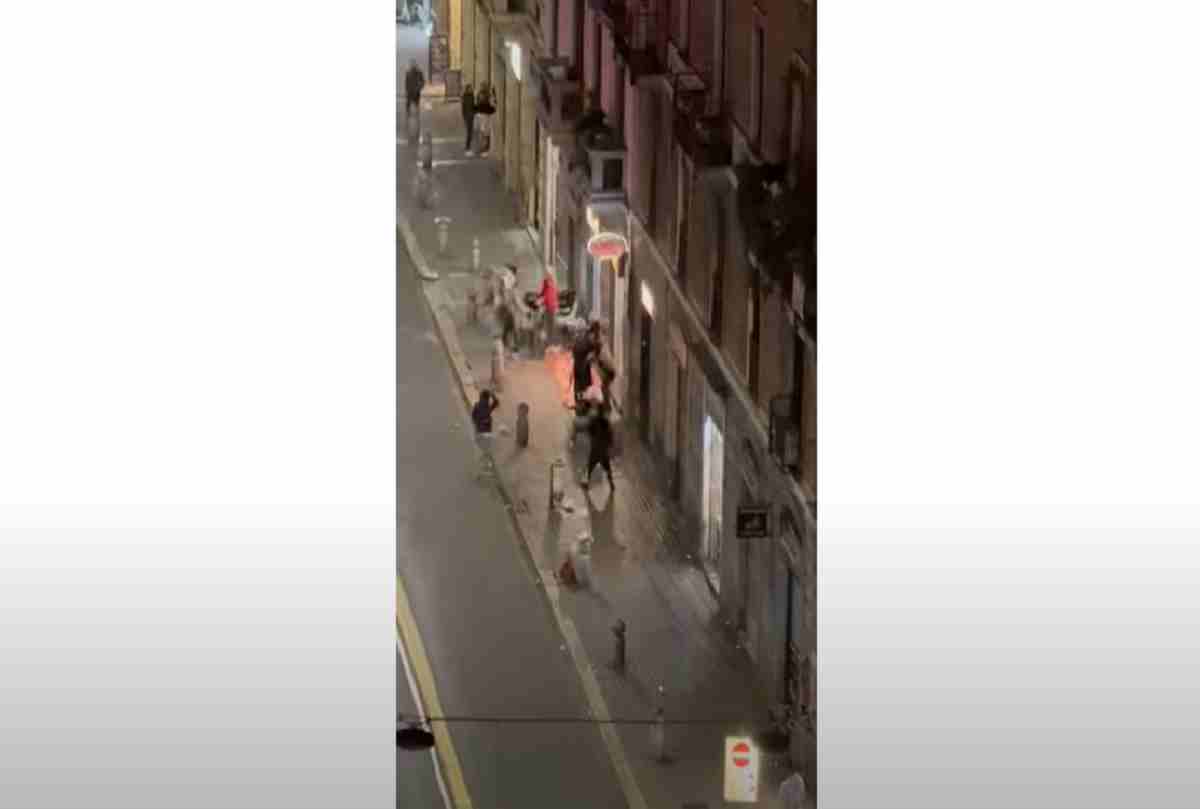 La scena è stata ripresa da un abitante della zona, verso le 4 di notte tra sabato 15 e domenica 16 marzo e pubblicata sul Corriere della Sera. Nelle immagini si vedono almeno otto persone azzuffarsi lanciandosi gli oggetti addosso, con le sedie usate anche come scudi.