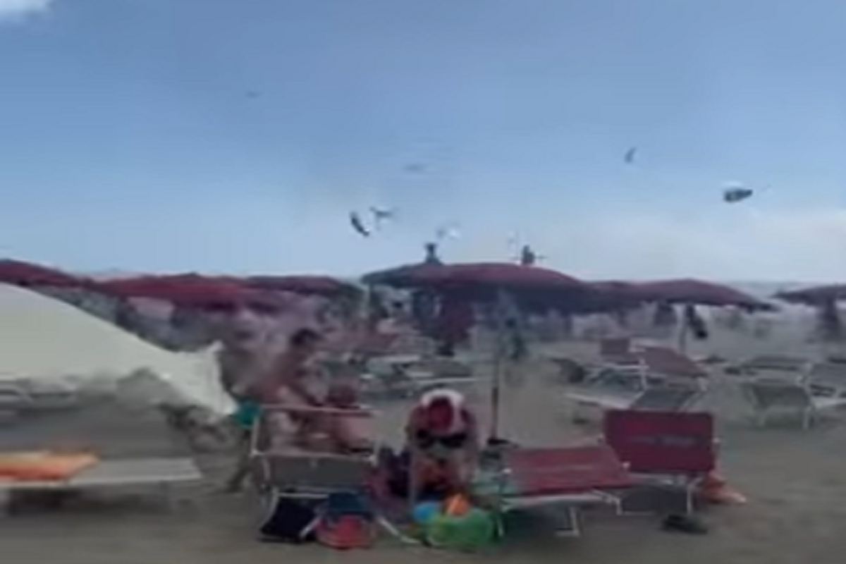 Tromba d'aria a Maccarese sul litorale romano: volano via ombrelloni e lettini, panico tra i bagnanti (foto da video) - BLitz Quotidiano