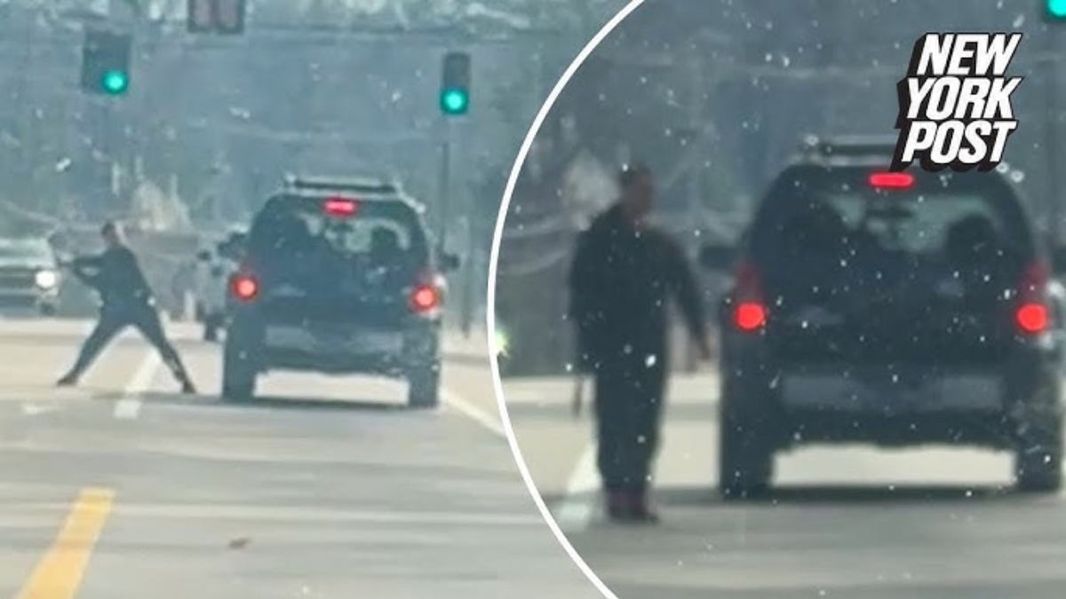 Urtato leggermente, estrae un'enorme ascia, si accanisce sull'auto e se ne va. A Memphis VIDEO (frame youtube)