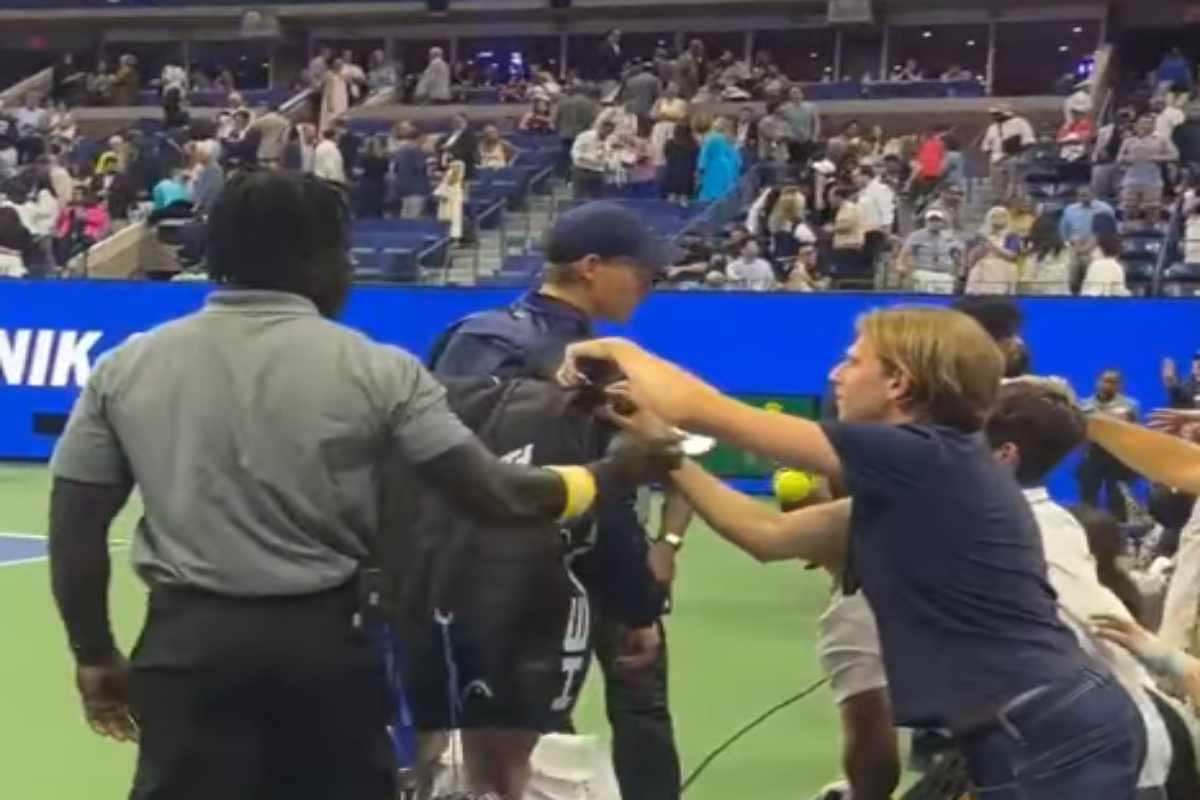 Al termine della partita contro Alexander Bublik, negli ottavi di finale degli Us Open, Jannik Sinner si avvicinato ai tifosi poco prima di lasciare il campo. Uno di loro, però, ha allungato le mani tentando di rubare qualcosa dalla borsa del numero 1 al mondo. Il tifoso, infatti, approfittando di un attimo di distrazione di Sinner, ha provato ad aprire la zip del suo borsone, forse per accaparrarsi un souvenir come un asciugamano o un capo d’abbigliamento.